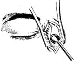 ⑷观察反应。当器械伸入已有相当深度,而操作时病人主诉术侧眼球有轻微疼痛或头前部疼痛,这往往是手术接近纸板或筛板的信号;若影响到视力、眼球活动,或钳取出脂肪组织时,更须立刻中止手术,作眼部检查,进一步确定原因,及时采取必要措施。