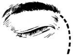 2.自眉端下方距内眦约0.5cm开始,向下作长约3cm的弧形切口(图6),深达骨质。