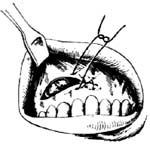 9.缝合切口 间断、连续或褥式均可,骨膜应连同缝合(图8)。最后,取出塞于磨牙间的纱布卷。