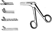 除鼻息肉及上颌窦常规手术器械外,尚需:手术显微镜(物镜焦距300mm,放大倍数6倍左右,连示教镜)、手摇钻(连圆形骨壁切除钻头,图1)、上颌窦自动拉钩(图2)、筛窦开放钳(平头及翘头)(图3)、蝶窦咬骨钳、骨科用髓核钳、骨科用椎板咬骨钳(头部2.5mm)、鼻腔自动张开器(图4),及粗、细吸引管各一根。