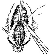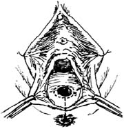 适用于近外阴及肛门位置较低的瘘孔。此类瘘孔常较大,有时合并有肛门括约肌功能不全,需将瘘孔以下的会阴部及肛门括约肌自正中切开,再行修补。