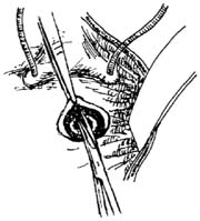 4.切除瘘孔 沿瘘孔边缘剪去瘢痕组织(图16)。