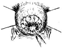 4.宫颈贮留囊肿处理 将宫颈腺囊肿刺破挤出囊液后,用电熨器头深入囊壁,到达基底,破坏整个囊壁。