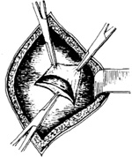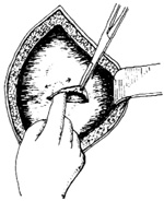 ⑴切开腹壁:操作与侧入式相同。