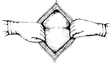 ⑹妥善止血:用小圆针、细丝线间断缝合膀胱筋膜3~4针,将膀胱复位,注意缝线勿穿透膀胱壁。