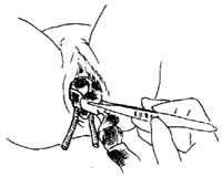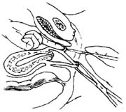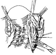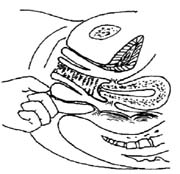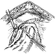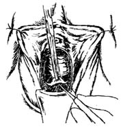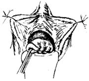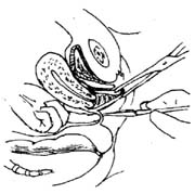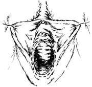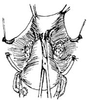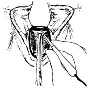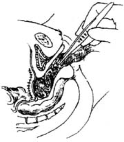 1.阴道切口 沿处女膜缘为切口(图13)。