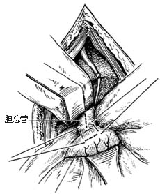 在缝合前壁时,可在胆总管前壁另作一小纵行切口,内放一t形管,然后再缝合吻合口前壁。如吻合口够大,也可不放t形管。