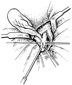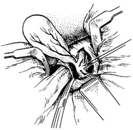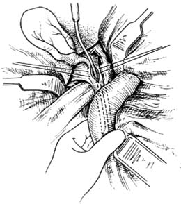 ⑴]。在胆总管前壁常有细小血管横过,应用细丝线缝扎,以防出血。