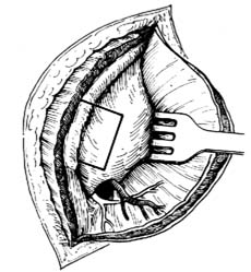 ⑴翻开臀大肌,凿开骨质,形成骨瓣