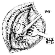 1.臀上动脉来自髂内动脉,自坐骨大切迹顶端偏外穿出骨盆供应臀肌,术中一旦损伤,臀上动脉近心端即可缩回盆腔,使止血困难。其预防方法是:①剥离臀大肌时,可先顺髂后上棘向下剥离至髂后下棘(后者是坐骨大切迹内上方的最低点),再由此向上向外顺坐骨大切迹上缘剥离至该切迹顶端。②臀上动脉处于骨膜外,剥离臀大肌时,特别是沿坐骨大切迹剥离时,必须严格控制于骨膜下进行,切勿分破骨膜。