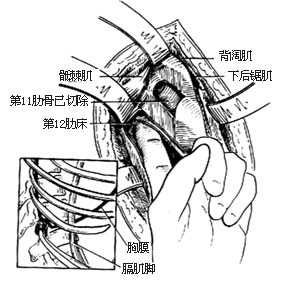 ⑷剥离及切除第12肋骨