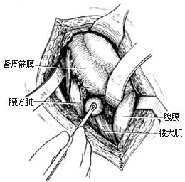 ⑹分离并推开腹膜及肾脂肪囊