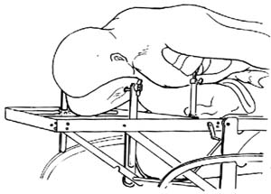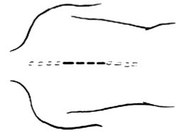 1.体位 俯卧位。注意尽量使病人舒适,尤其在选用局麻时更应注意。为了不影响呼吸,可用软枕或支架将肩关节及骨盆垫高。如在颈椎作此手术,应将头部支架放低,使颈椎屈曲,减少颈椎前凸,以利显露[图1