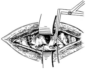 ⑷显露、探查椎管及减压