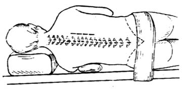 1.体位 一般选择椎体破坏比较严重、死骨较多、椎旁脓肿较大、截瘫较重的一侧作为术侧。体位同肋骨、横突切除病灶清除术,取侧卧位,术侧在上。