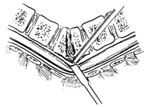 ⑸]以便充分显露,彻底清除病灶。再用细导尿管沿椎管上下伸入探查,如无阻塞,即可中止手术。