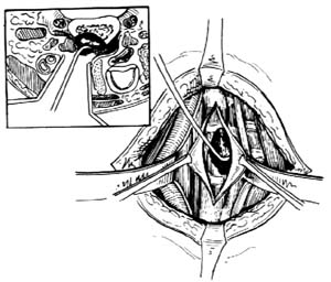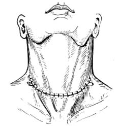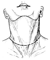 2.切口、显露 采用经颈斜切口[图1]或横切口[图2]。