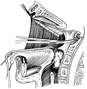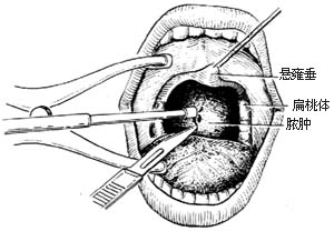 ⑴显露及切开咽喉壁脓肿