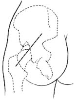 2.切口、显露 最好采用后侧切口。此切口的优点是术后当病人仰卧时,引流口位于低位,脓液流出通畅(仅作关节切开冲洗或负压引流术,或髋关节脓肿合并前外侧脓肿时,也可采用前侧或外侧切口)。具体显露步骤见