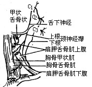 来自第一颈神经,有时第二颈神经参加。沿颈内动脉颈总动脉深面下行然后贴进颈动脉鞘之前方下行。下行过程中先后在其内侧分支供应甲状舌骨肌,胸骨舌骨肌上半部、肩胛舌骨肌上腹以及胸骨甲状肌上半部。