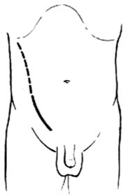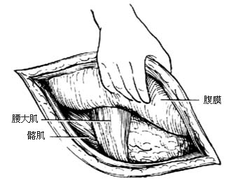 1.切口 右髂窝区作斜行切口[图1-1].