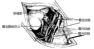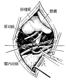肾脏可以采取原位移植的方法,通常用于左侧。但因术后移植体不容易观察,万一出现手术并发症,重行手术更为困难,故一般都采用将供肾移植于右髂窝的方法。这种方法手术操作简单而直接,术后便于观察。肾脏的触诊、体积变化的估计和活组织检查均较容易,一旦出现并发症,再手术亦无太大困难。移植于左髂窝的技术操作和右髂窝相同,但可能困难些,其一是因为乙状结肠及其结肠系膜不容易拉开,其二是由于血管,特别是髂总静脉,处于骨盆深部,因而作血管吻合时,尤其静脉吻合,比较困难些。因此,只在右侧移植失效后的第二次移植时,才用左髂窝。但也有移植右肾常规采用右髂窝的做法。