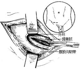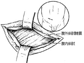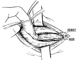 1-1 拉开外环,分开提睾肌,显露精索和疝囊(附图示切口)