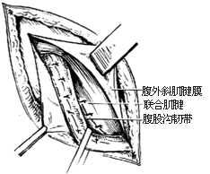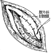精索皮下移位腹股沟斜疝修复术(halsted):精索移位至腹外斜肌外,联合肌腱缝于腹股沟韧带上,腹外斜肌腱膜重叠缝合