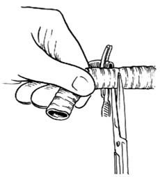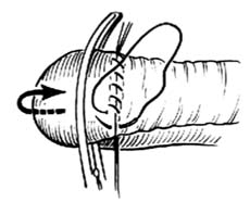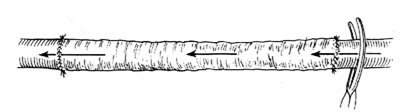 ⑷伸直伤肢,拉紧人造血管,剪到合适长度,以免过长而发生弯曲[图1