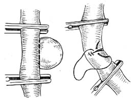 ⑻]。然后,将20mg肝素注入瘤囊内,随即各用一血管夹阻断腘动脉的近、远端,并在靠近瘤囊处分别切断[图1