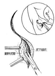 3.s表切口的翻转皮瓣范围宜大一些,应把有毛区皮肤的真皮层均切除。