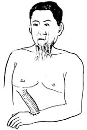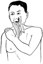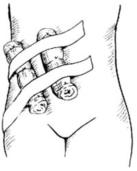 4.断蒂及转移皮管 无论是扁平皮瓣或管状皮瓣移植到另一部位后,再建血运,需要3周左右的时间,因此,须在3周后才可断蒂;如有感染,则需延长时间。较常用的皮管转移方法有两种: