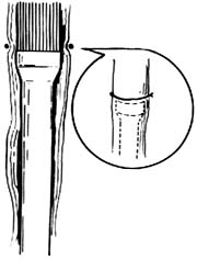 2.食管腔内置管术 将一段塑料管的上端放在热水里,用圆棍将管口扩大成漏斗形,以便放在肿瘤狭窄部的上方而不易下滑[图3]。
