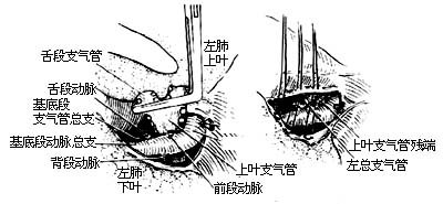 2-6 缝扎支气管动脉后切断、缝合左总支气管