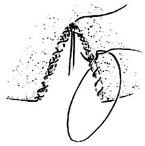 9-3 撤除止血钳,收紧第1层缝线,返回作第2层连续缝合