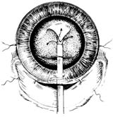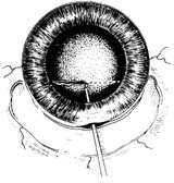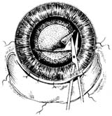 6.自一字形开口两端垂直剪开前囊膜(图6)。