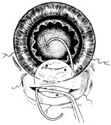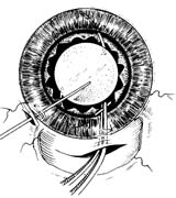 其上袢可仍以囊镊法植入。或完全关闭切口后,采用晶体调位钩旋入法植入。