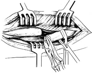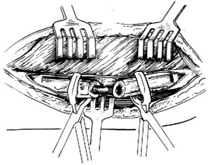 5.缝合 松开止血带,彻底止血。在专人保持肢体位置下松开骨折固定器,然后,逐层缝合。