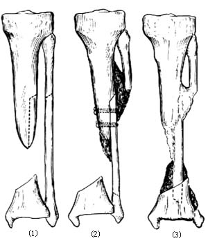 ⑶]。这样,植骨愈合后,胫、腓骨融为一体,增加了强度。